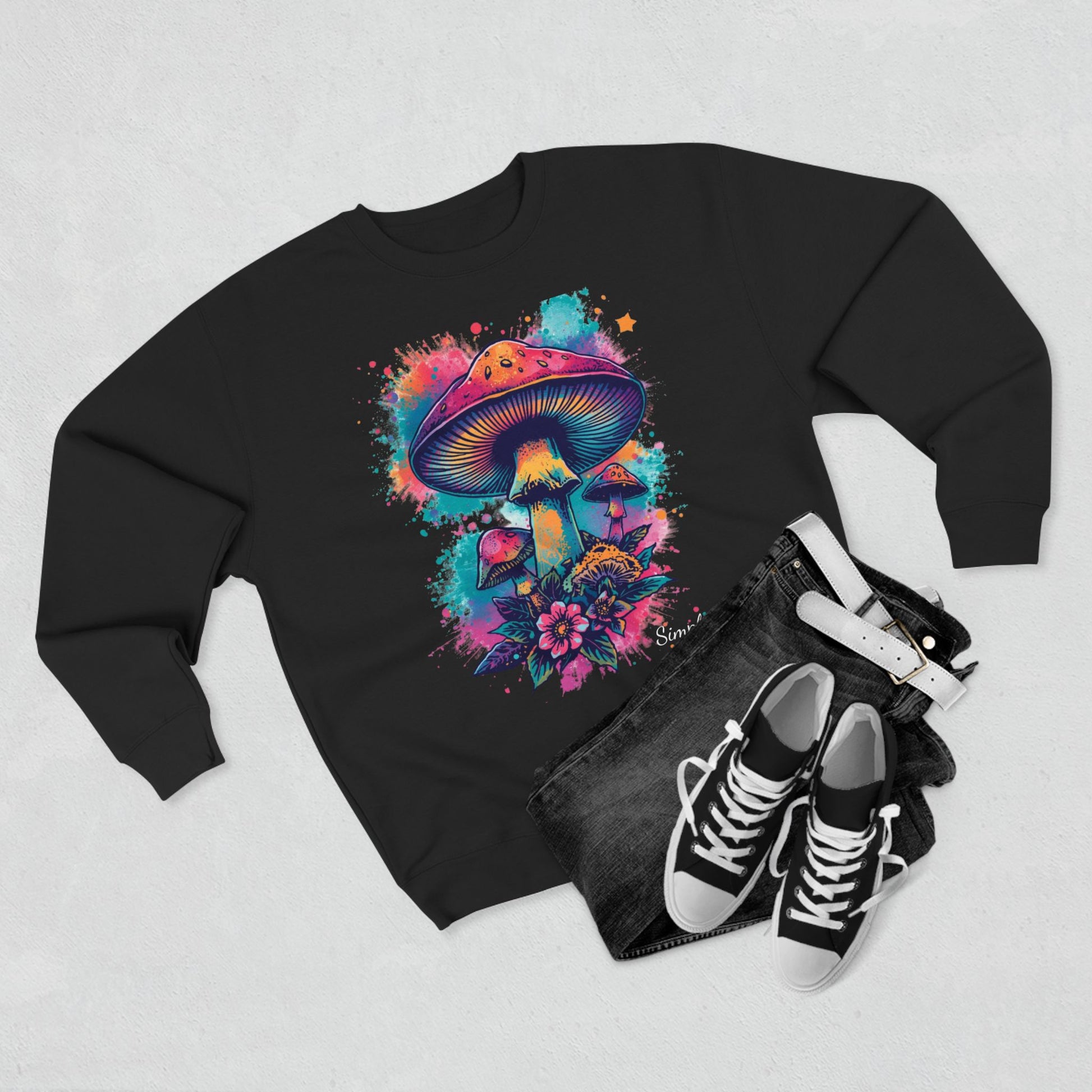 Vibrant Mushroom Sweatshirt, Colorful Crewneck